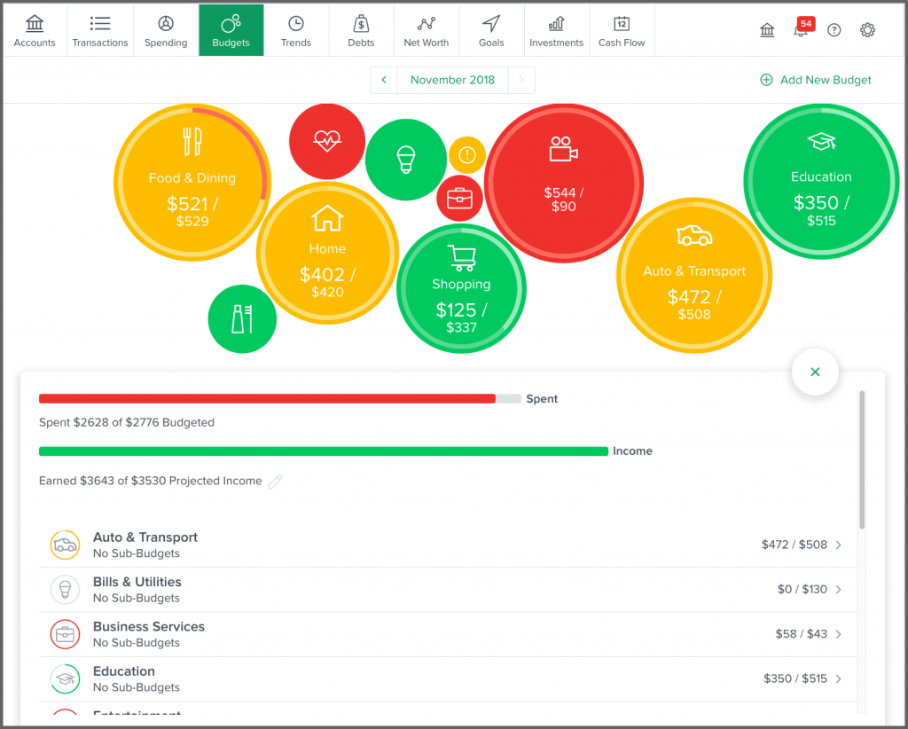 You’ll see bubble budgets by default, but a list is also available. Click on the small list or bubbles icon at the top left corner of Budgets to toggle between the views.